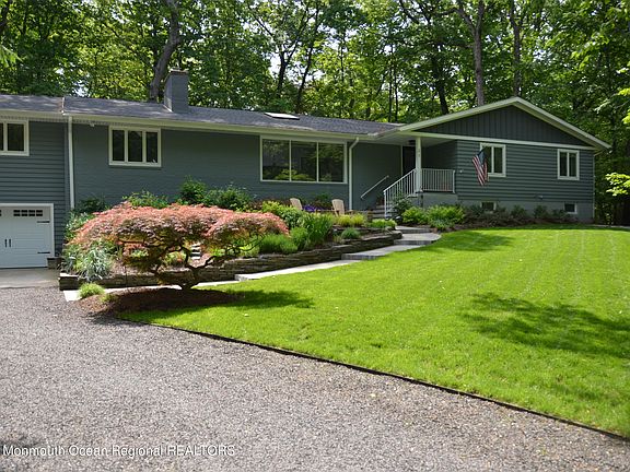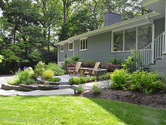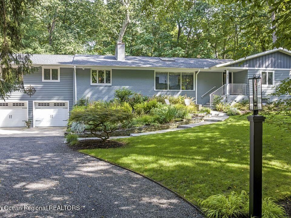 The perfect combination of convenience & privacy abound in this expansive 5 bdrm, 4.5 bath ranch set on 1+ manicured acre in sought after Lincroft area of town. Painstakingly renovated, this lovely home boasts a wonderful open floorplan w/walls of windows to allow for natural sunlight to grace the interior and enjoy the serene setting. From the newly created front exterior sitting area to the expansive deck overlooking the serene back, this home has many vantage points to enjoy the beauties of nature. In the last 4 years updates incl: New baths incl. fab Primary Bath w/Heated flr + Soaking Tub & w/in Shower, Superb Primary Closet, Stunning stacked stone gas FPLC in LR, Beautiful refnshd wood flrs, TOL SS appls, New doors, Refnshd W/O Bsmt, New Roof & HWH, 4-Car tandem gar, generator.