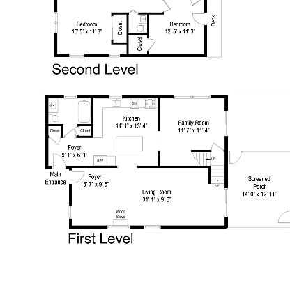 - Level 1 Rooms: Foyer, FamilyRm, Kitchen, BathMain, Laundry, LivDinRm, Screened