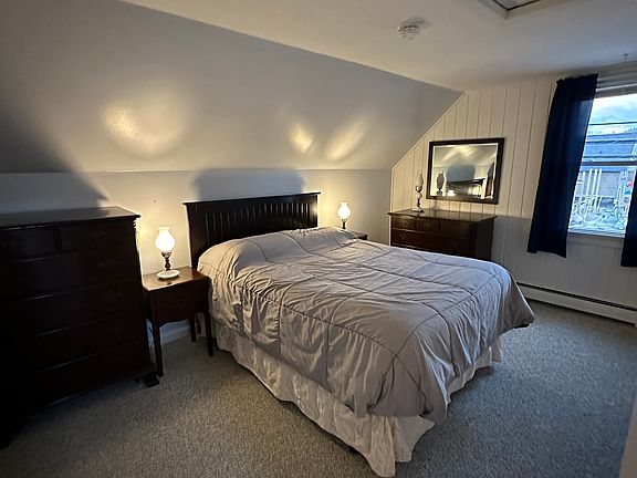 Month-to-month or longer lease. Flexible terms. Base price is for yearly lease. For shorter terms, please inquire about the rent. Will consider, seasonal, 6-months, one year or anything in between. Fully furnished, turn-key 1 BR/1BA apartment on the 2nd floor of this lovely updated colonial. In-unit laundry, dishwasher, flat-screen TV, full-size bed, and ample closet space, large eat-in-kitchen. Full-size pull-out couch in the living room for occasional guests and friends. Sunny 2nd floor apartment with sky lights. Off-street parking for up to 2 cars. Walking distance to the center of the town. One block from the town hall, close proximity to everything in Ludlow. On ski shuttle route to Okemo for convenient access to the mountain for work or for a day on the slopes without having to worry about parking situation on the mountain. The rent amount includes heat, municipal water, hot-water, sewer charges, driveway snow removal, and high-speed WiFi Internet access. The estimated total that is included in the monthly rent is about $250 worth of services. The rental period is month-to-month or for longer term leases. The choice is yours. We check references, credit-report, employment verification, and background checks. The application fee includes all the background, credit and reference checks. We will call references and employer to verify employment. No smokers. Available now. Flexible move-in date. Month-to-Month or longer lease. Maximum 12-months lease, renewable at the end of each lease period. Minimum of 30 day stay. Landlord pays for heat, hot water, Internet, water and sewer, Gigabit WiFi Internet access, snow removal. You pay for the electricity. Must fill out applications that includes background check, reference check, employment verification and credit check. All applicants and co-applicants must fill out the application. Your application will not be processed until all applicants fill out the forms. Pets must be "interviewed" by our staff and approved, and must pay refundable pet deposit of $250 in addition to standard security deposit. You will get this deposit back when you move out, and if there are not damages to the property from the pets.