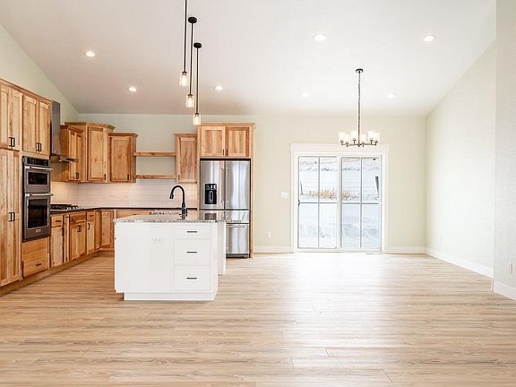 This beautifully designed 3-bedroom, 2.5-bath ranch-style home sits on approximately an acre, offering stunning mountain views. The open floor plan features an oversized breakfast bar island, granite countertops, and soft-close cabinets. The primary suite includes a walk-in tile shower, a separate stand-alone tub, and tile surrounds in the second bath's tub/shower. A cozy gas fireplace enhances the living space, while the large laundry room offers ample storage and a convenient sink. This custom build allows for personalized design, color selections, and finishes to perfectly match the new homeowner's vision.
