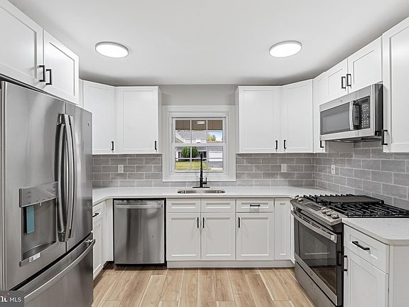 Welcome to this completely renovated 3-bedroom, 2-bathroom ranch in Willingboro’s desirable Pennypacker Park neighborhood. The open-concept living and dining area features wide-plank luxury vinyl flooring, fresh paint, and a striking white brick fireplace. The updated kitchen boasts white shaker cabinetry, quartz countertops, subway tile backsplash, and all new stainless steel appliances. A bright tiled sunroom with French doors opens to a spacious, fully fenced backyard and patio, perfect for entertaining or relaxation. Both bathrooms are beautifully renovated with marble-look and stone-effect tile finishes plus shiplap accents. Recent upgrades include brand new HVAC system, a brand new sewer line, and a newer roof that is only 2 years old. The attached garage and generous driveway provide excellent parking and storage. Perfectly located minutes from Route 130, I-295, shopping, parks, and commuter routes. Move-in ready. Just unpack and enjoy!