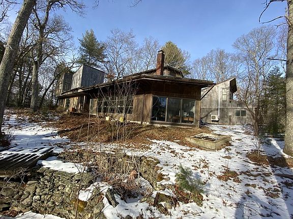 Rare Find Unique 1960's Contemporary style 2,400 sq. ft. home with 2 bedrooms. This mid-century modern home incorporates views of the surrounding woods and passive solar heating. The idyllic landscape served as a backdrop and inspiration of the owners creative life. Situated on 12.65 beautiful acres located on scenic Pond Street. This property has been in the family since 1970, the owners were art professors and central figures in the Hypergraphics Movement. A large studio addition was added in the 1990's which was integral to their career in painting, ceramics and sculpture. You will go back in time once entering this property. New furnace and well have recently been installed, many other updates and work will be needed depending on buyer's requirements. Seller is researching additional bedroom possibilities, as there are 2 septic systems in place. There are many beautiful scenic trails within these 2 parcels of land. Call today with any questions about the potential of this property.