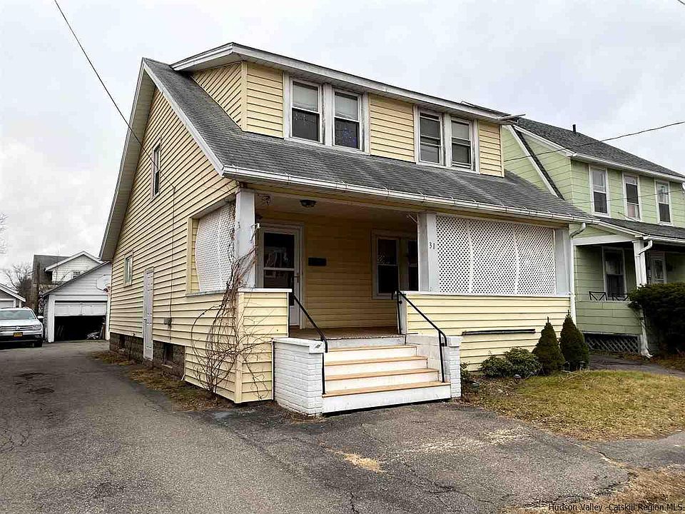 Charming two story with open front porch to relax on. Situated in Kingston between Uptown, Mid-town and the Rondout.. Rail trial runs through the area.. Hope on your bike and cruise.. Municipal water , sewer and natural gas makes this for easy living.. Come take a look. Shared driveway , nice yard and garage in back..