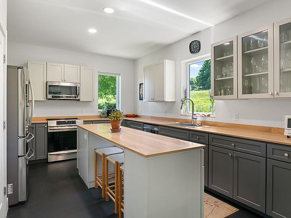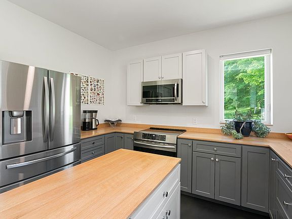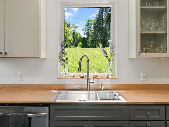 This wonderfully unique home was designed and built for the owner, by the owner, in 2022. The house is close to downtown but is privately nestled in a new neighborhood just off the beaten path. The beautiful rear porch is surrounded by professionally maintained gardens, a meadow view, and a lovely secluded rear lawn. The interior open-concept layout shows a U-shaped kitchen with a long center island at one end and the living room with huge windows to the gardens at the other. One-level living is hard to find and this is a perfect fit with an attached garage so no raindrops will ever fall on your head. The energy efficiency of this home is 5-Star +. This is a house of the future - all-electric, no fossil fuels, an impressive HERS rating, an induction range, a heat pump dryer, and a heat pump water heater. The energy usage for the calendar year 2023 totaled $1188. (with daytime thermostat at 69, nighttime at 66). The addition of a modestly sized photovoltaic roof system would bring the annual energy usage down to zero.