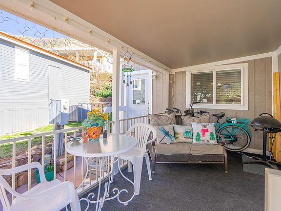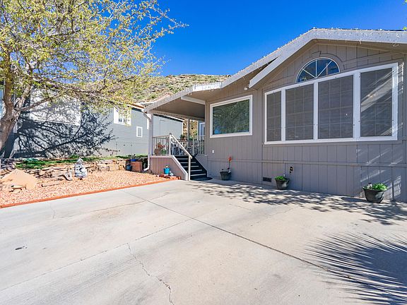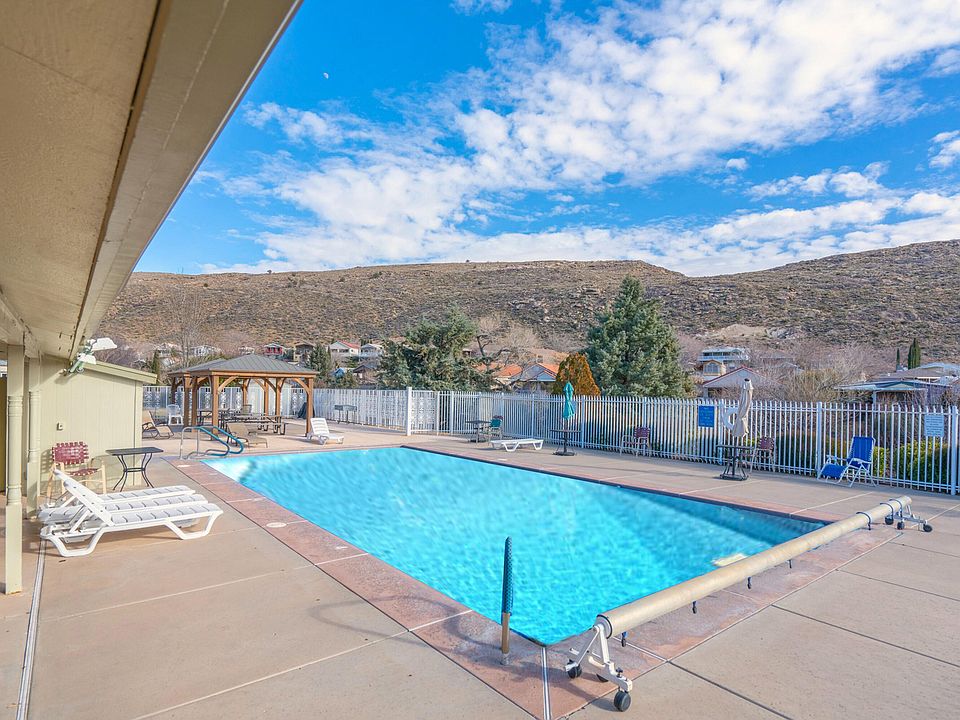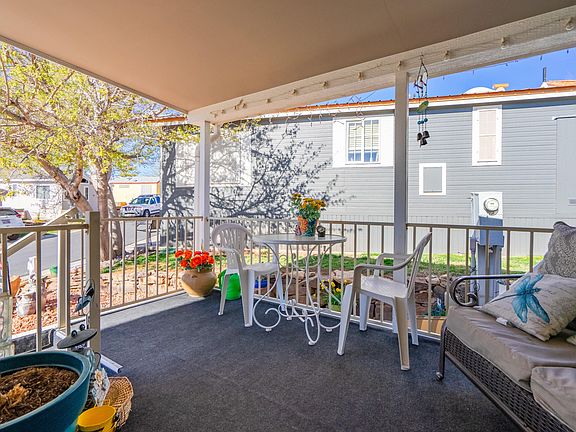 Featuring vaulted ceilings and abundant front-facing windows that offer stunning views of Pine Valley Mountain, this home exudes warmth and spaciousness. Step outside to enjoy the expansive front patio, perfect for relaxing or entertaining, as well as a secluded side patio for added privacy.