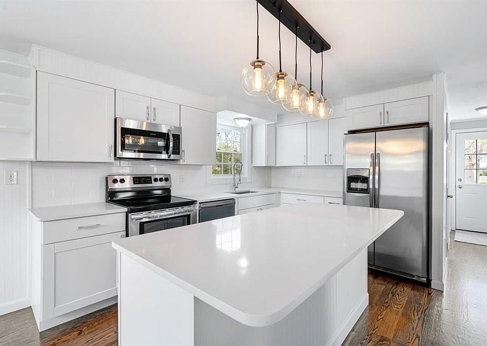 This is the one you've been waiting for! This young, light, bright and open, turn-key cape has been tastefully renovated from floor to ceiling! A beautiful home for entertaining, the property features a brand new roof, gleaming hardwood floors throughout the entire first floor, open concept living space, solid quartz countertops, brand new stainless steel appliances, spectacular natural light and high-end finishes. The second floor offers three spacious bedrooms and a full-bath, high ceilings and storage! Directly off the open kitchen you'll find a convenient half bath with laundry, as well as direct access to both the fully finished basement level, and the inviting and fully screened back porch! A friendly and quite neighborhood rounds out this wonderful family home! Call today for a showing. Won't last!