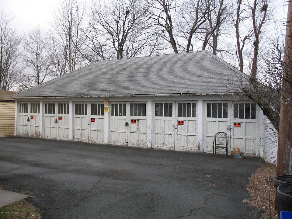 This home has a 12 Car Garage with a basement and concrete floor separate from the home, plus and a two car garage under the home in rear. Very unique home with transomed solid wood interior doors, great woodwork and tons of potential.
