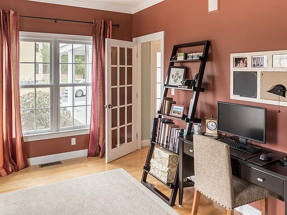 The living is easy in this impressive well-designed contemporary colonial. This 11 room home boasts 5 bedrooms and 3.5 bathrooms, front and back staircases, gleaming hardwood flooring throughout the first level, spacious dining and living room separated with architectural columns, gorgeous family room with soaring ceiling, oversized custom windows, and brick gas fireplace. Gourmet Chefs Kitchen features granite counters, cherry cabinetry with tons of storage, wine rack, double ovens, vented fan, desk area, breakfast bar, pantry, large dining area and access to entertainment size deck and private backyard. First floor laundry room, private office with French doors, ½ bath and mud room area complete the first level. Second floor has 4 bedrooms and two full baths, plus a beautiful master bedroom with 2 walk-in closets, private bath with jetted tub. Bonus third level is perfect for exercise or game room. Radiant heat throughout kitchen and family room.