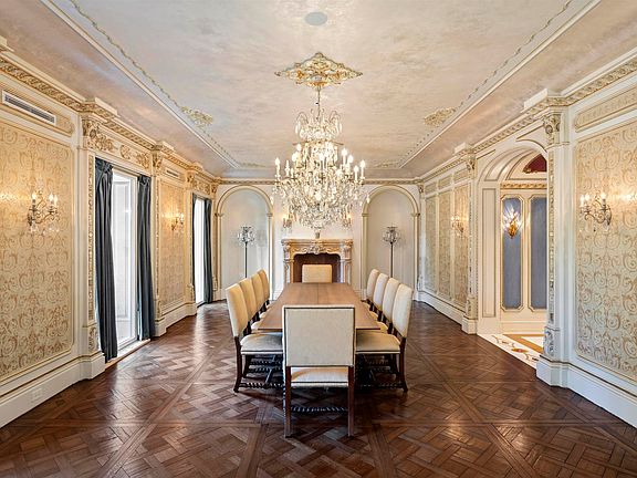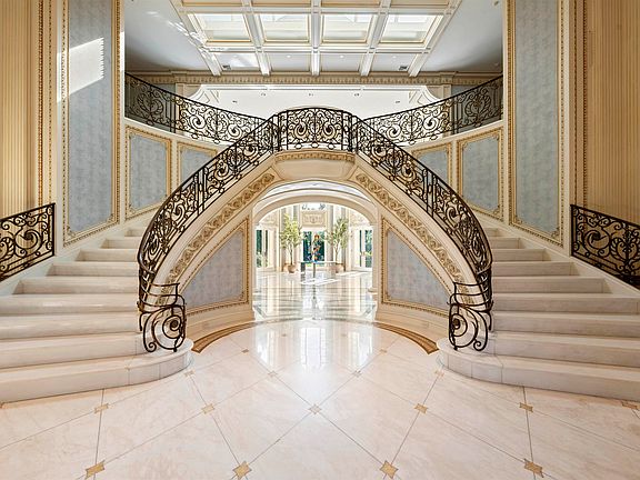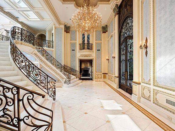 Nine fireplacesStately gatesCustom wood floorsVenetian plaster wallsDramatic bridge marble staircaseHeated marble underfootCustom closets