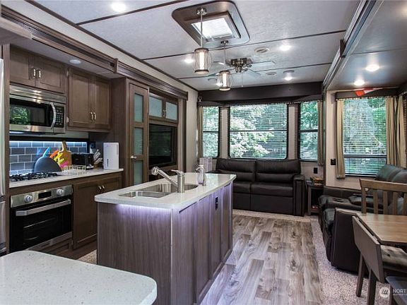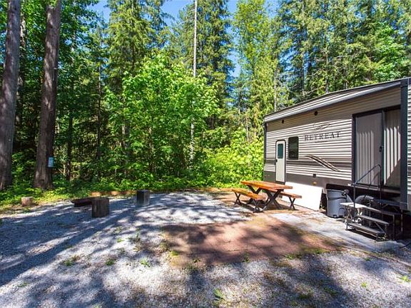 Like new 2020 destination trailer on a deeded recreational lot. Lot is in a cul-de-sac that backs to the Gorge trail to the Nooksack River. So neighbors on only 2 sides. Large patio made of pavers, on this very open with lots of sunshine space. Lot is located in the Glen at Maple Falls recreational park that has many amenities which include but not limited to 2 pools, hot tub, sauna, 2 lodges, tennis courts, disc golf course, riverfront access, playgrounds and many more.