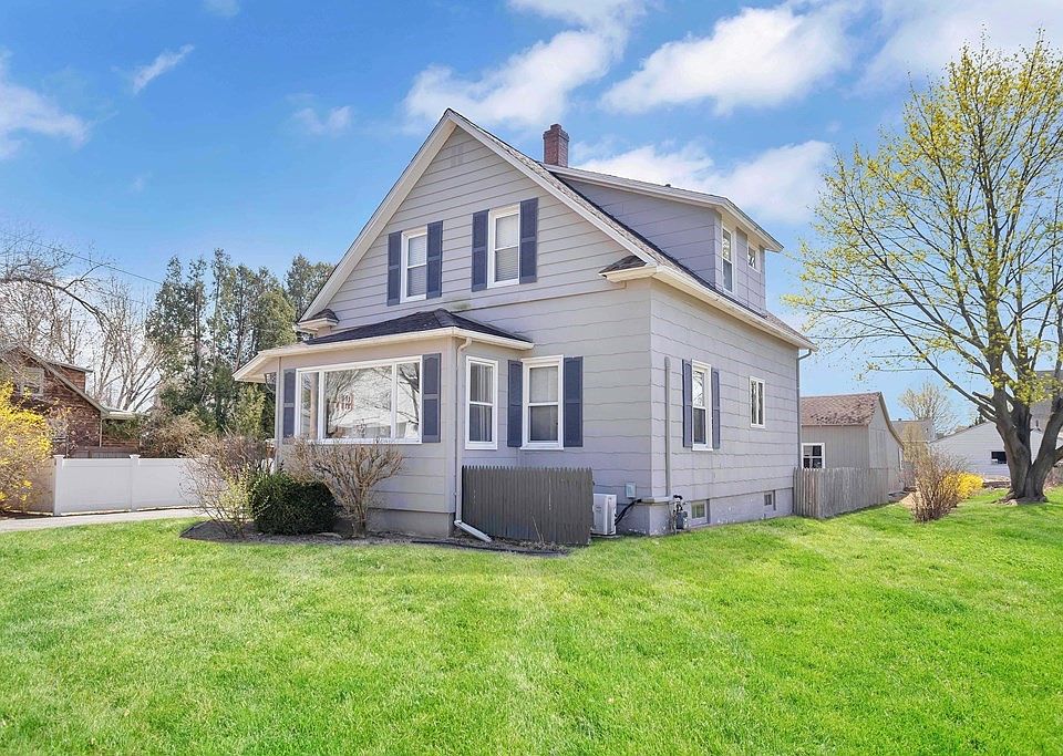 Welcome home to this well-appointed, spacious property! Some great features include: Updated kitchen including hardwood floors, counter tops & cabinets. Newer appliances, recessed lighting, island, and open eating area with a massive bow window. Possible 1st. floor master suite/flex space with a vaulted ceiling & private entrance. Plenty of natural sunlight, newer carpets & fresh paint through- out. Two updated bathrooms, AC, and enclosed front porch. The large living room space has old world charm with a modern feel. The property has a large flat, fenced in yard with plenty of room for entertaining, family activities or simply relaxing. There is an oversized two car garage and double stalled shed. The dry basement has laundry hook- ups, a set tub & plenty of room for storage. A Pleasure to show!