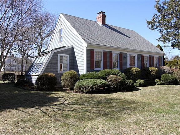 North of 6A and a 5 minute stroll to Saint's Landing on Cape Cod Bay, this immaculate Classic Cape Cod style home has 3 roomy bedrooms, 2 full baths, and a gorgeous sun drenched solarium with a handsome brick floor. This home has been lovingly maintained and the landscaping is superb. A detached single car garage in the rear has a breezeway which leads to a mud/laundry room adjacent to the kitchen.THIS HOUSE IS A GEM!