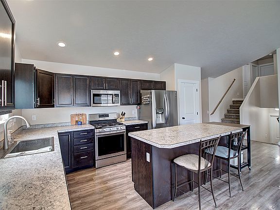 You will love this home centrally located in the heart of Kalispell with easy access to the bypass and walking trails. The kitchen with gas range, large living room and dining room feel open and allow conversation and time together. An expansive primary bedroom with en suite bathroom are a welcome surprise. Relaxing on the newly constructed back deck will be easy with the low maintenance yard including an underground front sprinkler system. The home owners association maintains a neighborhood park and convenient street snow plowing. The lower level windows are at ground level letting in lots of light. Enjoy all the benefits of a newer home while living in an established quiet neighborhood. A quick thirty minutes to Glacier National Park and two ski resorts!