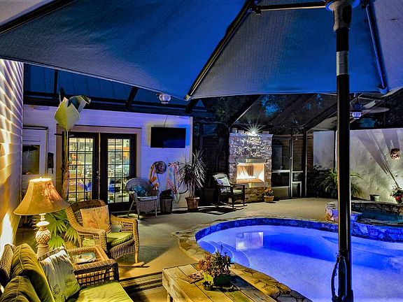 Welcome to the life of Rohde Avenue! From the lively screened backyard entertaining area to the quiet front porch appointments, the thoughtful owners have added tons of amenities & modern conveniences while retaining the character of this charming historic home. A brand new kitchen sports loads of custom cabinets, quartz countertops, appliance garages, a hidden mail center, and a fully retracting lazy susan that seems never-ending. Out back is a heated pool, fire place, and summer kitchen. The master bedroom has custom built ins, a remote controlled fireplace, and is a true on-suite situation with a jetted tub, separate shower, and plenty of closet and cabinet space. Much of the home still has the original pine floors, many built in cabinets & shelves, and the front porch is appointed with coquina columns and balusters. Both fireplaces, the kitchen range, and the tankless water heater are all gas powered. The large backyard entertaining area includes in ground heated pool/hot tub with waterfall, fire place, fans, summer kitchen, dining area, and lots of seating all inside of a very large screened enclosure. The separate "studio" building is equipped with a mini-split air conditioner, a wine cooler, ice maker, and a mini fridge. Home has recently been equipped with gutters and rain barrels. Enjoy the short walk to our great uptown and downtown restaurants and attractions while enjoying the quiet setting of this residential neighborhood. Some of the furniture may be negotiable.