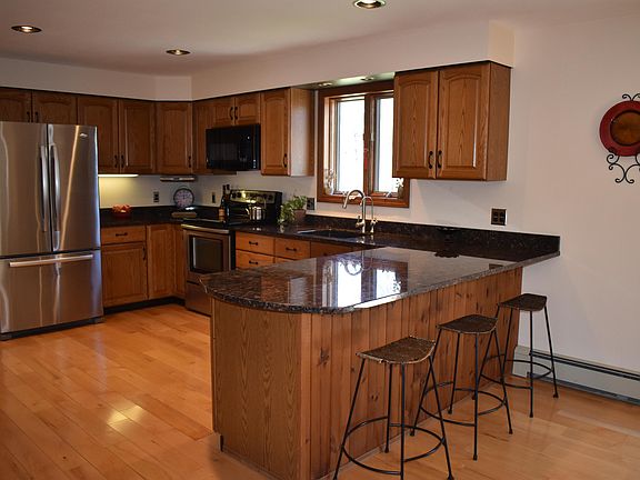 Wonderful Winthrop neighborhood. Enjoy the many updates that come with this Cape style home! Maple floors greet you as you enter the updated kitchen. You will love the granite counters, stainless appliances and ample cupboards for all your cooking needs. The dining area and living room also offer shining maple floors and sliders to deck overlooking rear yard. Formal dining room can also serve as first floor bedroom. Conveniently located main level laundry and full bath both tiled for easy clean up. Second story has 2 spacious bedrooms and full bath for family and/or guests. Lower level offers spacious family room with built-ins and brick hearth. Walk-out to yard for family fun. Paved driveway brings you to the 2 car garage and large 14 x 16 shed.