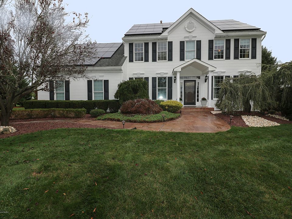 Turn key, mint condition, prime location in Four Maples, large in-ground heated pool on 1.27 acres of meticulously maintained private yard with 15 zone sprinkler system. About $12K ($3K x 4 yrs) of tax free SREC revenue for owned 10 years new solar system and free electricity for next 20 years. 4 bedrooms, 3.5 bathrooms, 3,100 sqft with 1,300 more sqft finished basement. Gourmet kitchen with two ovens, warming tray, wine frig, granite, center island, stainless steel, instant hot, disposal, etc. Bathrooms updated 6 years ago. Finished basement with movie room, game room, full bathroom, pantry, office and storage. Home upgraded for high eff 3 zone heat/AC, tankless water heater, insulation/sealing. Deck with 3,000 sqft of well maintained stamped concrete patio, 33,000 gal heated pool with diving board, paver wall, gas bbq, fountain, shed, garden and large driveway. Decorative moldings, hardwood floors, over 50 hi-hats, box outs, ceiling fans, custom book shelf, skylights, etc. Roof on back of home <3 years old, roof on front of home under solar panels 10 years old with 30+ year shingle, All bathoom venting updated 3 years ago to exhaust through roof, attic fan, 12 inches of extra insulation in attic with special hermetically sealed caps for hi-hats, skylights, decorative moldings, custom 10+ feet high built-in book shelf built-in, 2 gas fireplaces with custom decorative mantels, Faux wall painting in back sun room, 5 ceiling fans, over 50 hi-hats, instant hot, garbage disposal, movie room with large viewing screen, pool table, Anderson windows and doors, French doors, 9 foot ceilings on 1st floor, built in speakers in family room, kitchen, deck and pool area, shelving in laundry, ample attic storage with Louisville ladder access above garage, marble flooring a wall tile in master bathroom, ceiling heater with timer in basement bathroom, extra refrigerator in basement, 2 separate offices for teleworkers, water filter installed before tankless water heater to reduce required maintenance. What makes this home unique is the backyard layout where there is 400 sqft of raised decking and 2,000+ sqft of nicely maintained stamped concrete with a private 33,000 concrete pool from Holiday Pools with 4 year old liner from Mid State Liners and 3 year old gas heater with diving board and large shallow end for games and fun. And where the pool is located close to home and to one side where the rest of the 1.27 acres can be enjoyed with kickball, wiffleball, volleyball, football and all kind of family games where the pool is not in the way. The 1st floor design with the extra sun room off the back of the home makes it an ideal home for large family gatherings and events with the large center island, wine frig section, two ovens and family room and backroom both open up from the kitchen. With the finished basement, the home easily accommodates over 50 guests comfortably for big family events.