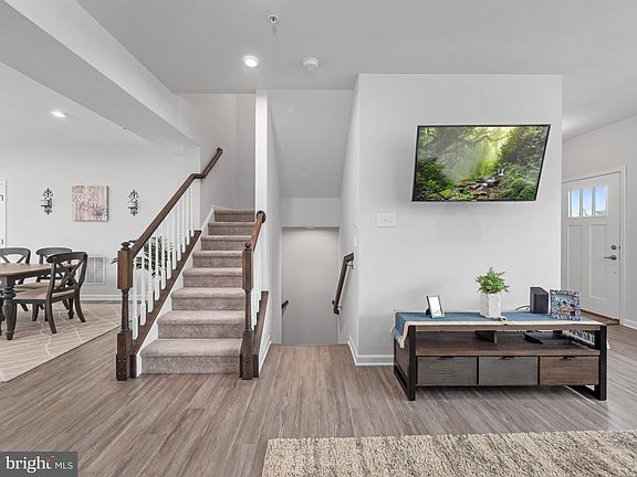 Meticulously kept, like new twin home with three bedrooms, two and a half baths, finished basement, all backing to open natural space. Luxury vinyl plank carries throughout the open, contemporary feel of the main level-living room with ceiling fan and triple window; into kitchen with large island and breakfast bar, gas range, and stainless steel appliances. Under-cabinet lighting illuminates the granite counter tops. French doors from the dining area lead to the composite deck that overlooks the natural landscape. The carpeted second level has three bedrooms-master suite with recessed lighting, ceiling fan, walk-in closet and adjoining bath with his and her vanities and shower with seating and glass surround. Two additional bedrooms, hall bath, and convenient laundry area complete the second level. Split stairs to the basement either lead to the cozy family room with egress window or the office with French doors, and large storage area in between. The property has two parking spaces, and sets directly across from the common area parking and mailboxes. Beautifully kept, and can be ready for a quick settlement!