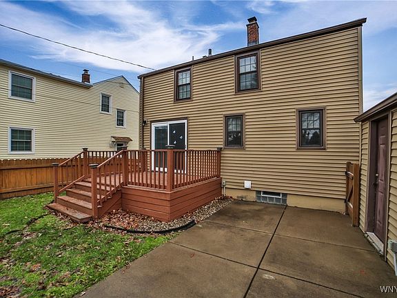 Move right into this well-maintained 3-bedroom, 1-bath home, conveniently located close to parks, shopping, and the Thruway. The updated kitchen features granite countertops and appliances and overlooks the fully fenced yard with an above-ground pool. A bright, welcoming living room offers a bow window, and a large entryway nook adds extra space and functionality. The dining room includes sliders leading to the deck. Upstairs you’ll find three generously sized bedrooms and a full bath. Additional highlights include updated windows (2018), a full dry basement with ample storage, a roof replaced in 2022, a concrete patio, and a one-car detached garage.