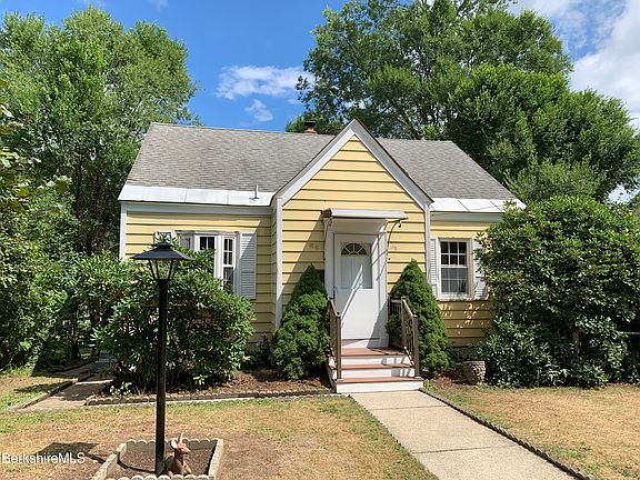 Three bedroom cape featuring low maintenance vinyl windows, newer roof, and aluminum siding. Secluded back yard with a stone patio covered by an awning and one car attached garage. Gleaming refinished hardwood floors throughout, along with fresh paint. Two bedrooms and one bathroom on the first floor. New stainless steel appliances in the eat-in kitchen. Second floor includes the third bedroom with some additional storage space.