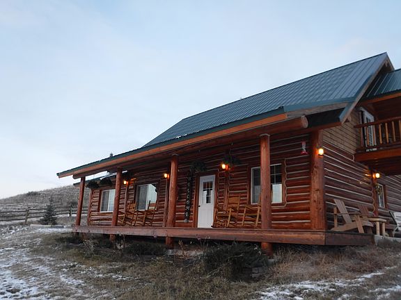 Custom cozy log cabin on approx. 7 acres. Beautiful views of Canyon Ferry lake and Elkhorn mountains. 3 bedroom 2 Bath. Large master bedroom with large walk in closet, and master bath upstairs. Has nice deck off master bedroom to enjoy morning coffee. Vaulted ceilings upstairs and in great room downstairs. Quadrafire wood stove. Heated by dual fuel Central boiler system for cozy warmth in winter, propane boiler with in floor heat, wood back up system on boiler. Canadian made Heartland kitchen stove that is made to look like old fashioned stove, but is propane. Six heating elements , oven and separate broiler. Ceramic tile downstairs that is warmed by in floor heat and wood floors upstairs. Footed slipper tub upstairs, and footed shower downstairs with daisy shower. Antique wash stand with bowl sink. Beautiful farm style sink in kitchen. Recent appraisal just finished.