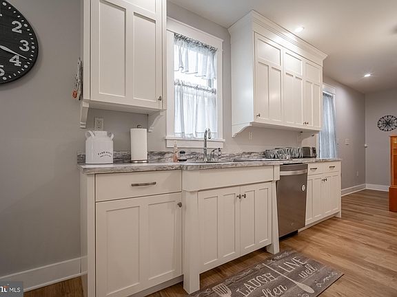 A simple & unique modern farmhouse style home with the perks of in-town living! If you’re looking for a home that is ready-to-go, this home was remodeled within the last 5 years and included custom woodworking in the kitchen & bath cabinetry and the staircase. The home has seen improvements ever since including landscaping which seems to add the final touches to make it feel like home. While simple, the home still offers great possibilities for entertaining friends and family with an open floor plan on the first floor with access to the covered porch and patio for your enjoyment during the warmer months. Since this yard currently backs up to farmland, it enjoys relative privacy that is further enhanced by the addition of the fence. This also offers peace of mind for those with children or pets. First floor living is possible with laundry and a full bath, and the 1st floor bedroom features 2 double closets for ample closet space. The 2nd floor enjoys nice separation from the rest of the house with a whole floor to itself, ideal perhaps for the older child in the family. There’s even a half bath on level for convenience! The detached 2-car garage in the rear offers a place for a workshop if desired, or a great storage solution. The current owner loved “how quiet” & “safe” she felt living here. You’re not only buying a home, but you’re joining a community. Enjoy close proximity to the in-town parks & ballfield for recreation. Throughout the year you’ll get to enjoy many in-town celebrations including parades, fireworks, and a community Trunk-or-Treat. Staples in and around town include Italian Delight for a family Pizza Night or Mexican food and Becky’s Kitchen for great at-home cooking (so you don’t have to cook). If you’re into water recreation, the Susquehanna River is just a short drive away where you can also pick up the Mason-Dixon Trail for hiking. For connection to Route 30 for access to York or Lancaster, you need only to drive north to Wrightsville just 10 minutes away, and I-83 is just 15 minutes away.