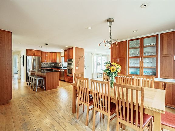 On a quiet street just a mile from town, this sunny Cape is a gem. Open floor plan w/ fully renovated kitchen w/ ample counter & storage space, custom cherry cabinets, lovely dining area, &, overlooking the back yard, a family room w/ vaulted ceiling, great light, built-in shelves & gas fireplace. Sweet living room w/ a wood-burning fireplace, built-in bookshelves, picture window & window seat. 2 bedrooms & a full bath complete this level. Upstairs, a primary bedroom w/ vaulted ceiling & 3 closets; a 2nd upstairs bedroom is also nicely sized. 2nd full bath on this floor too! Dry basement w/ Triple Safe™ water management system & perimeter drain, & lots of storage space. Fully fenced backyard is a private oasis w/ inground pool, saltwater hot tub, patio, & custom shed. All original windows replaced. Electric car charger. Access the Meadows & adjacent Arcadia wildlife sanctuary from either end of the street, or hop on the nearby rail trail. See improvements list. OFFERS DUE NOON 4/23.