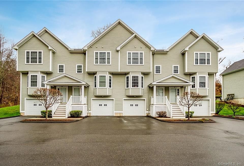 Experience maintenance-free luxury, privacy and access at sought-after Oak Hill Commons! This immaculate end unit offers a spectacular open floorplan with 9' ceilings, hardwood floors, spacious living and dining room, and large windows. An eat-in kitchen has been upgraded with granite countertops, hardwood shaker cabinets, double sink, recessed lighting, ample counter space and a gorgeous bay window. A kitchen cutout looks to the open plan living-dining room which features an elegant fireplace and sliding doors to your private stone paver patio bordered by privacy fencing and looking out over tiered hillside landscaping; get ready for a summer of amazing indoor/outdoor entertaining! Upstairs you’ll find generous bedrooms with storage, beautiful windows, hardwood floors and designer lighting, plus 3 closets in the primary suite with a large bath. A well-placed dedicated laundry closet is located on the upper level. Additional amenities include: convenient one car garage with automatic opener, first floor powder room, thermopane windows, central air, ceiling fans and more than can be listed here! Incredible location only minutes from the Wallingford Train station, dog park, restaurants, hospitals, hiking trails, Amazon, Quinnipiac and the Wilbur Cross Parkway. This is a rare gem in a complex that hardly comes on the market; don’t miss your opportunity to own this turnkey townhouse! Sellers installed gas line to the back of the stove for a dual fuel range is desired