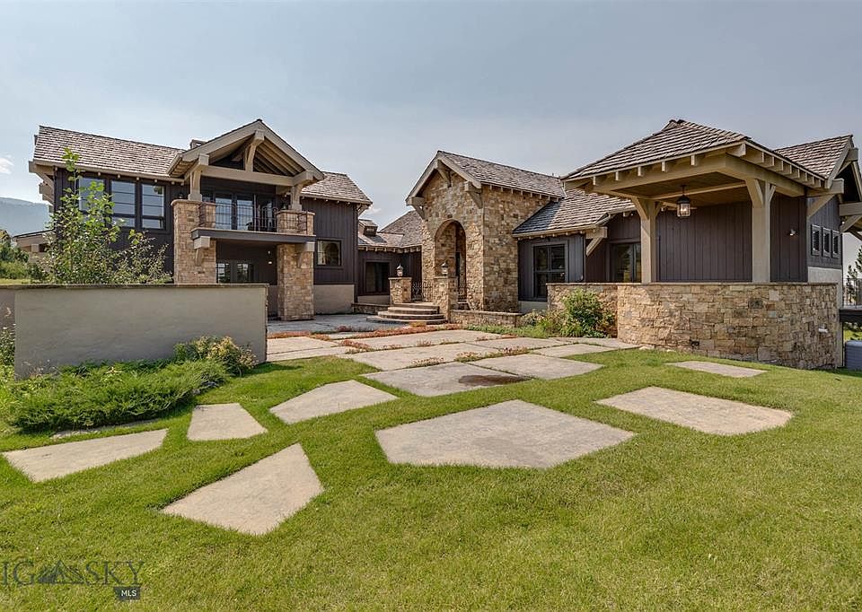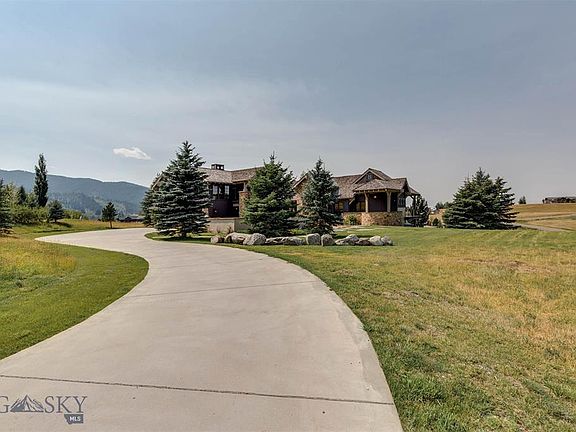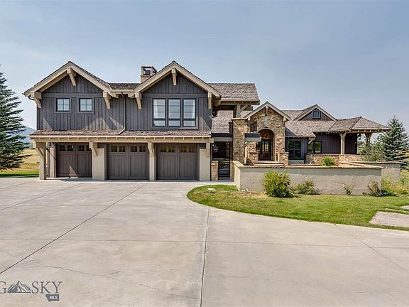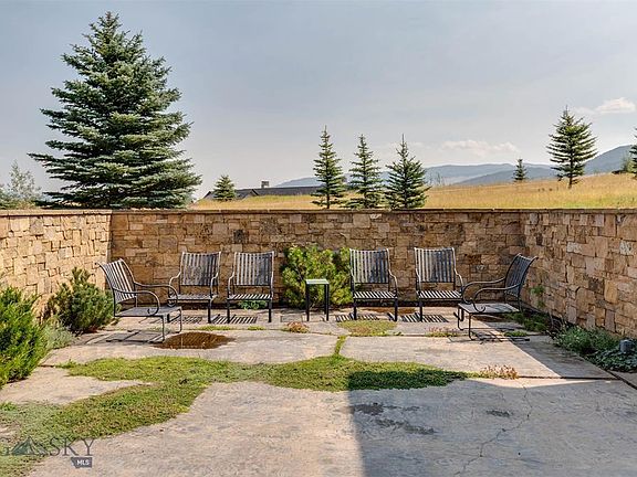 Stunning Triple Tree home in SE Bozeman combining Old World charm with true Montana sensibilities and materials. Designed for gatherings and entertaining with multiple outdoor living spaces, soaring vaulted ceiling in the living room, 5 wood-burning fireplaces, spacious gourmet kitchen and eat-in dining area with bar seating island, Jenn-Air 6-burner range, 2 dishwashers, and catering kitchen with a 2nd Jenn-Air range, fridge and ice maker. Highest quality finishes through-out. Master Suite has sitting room with fireplace, covered balcony overlooking charming courtyard, and double master baths with spacious closets. Lower walk-out level features a large family room, two ensuite bedrooms with sitting rooms and kitchennette/laundry space, and glass French doors to covered patio and lawns. Main floor guest room has private covered patio, and main floor office has glass French doors to covered deck. 3-car attached garage, a washer and dryer on every floor, and move-in ready.