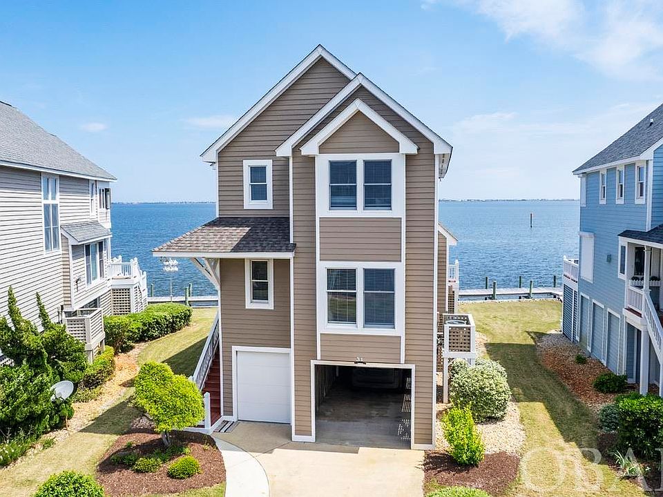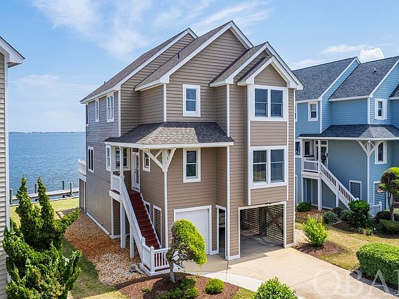 Located on the soundfront, close to great fishing, boating and of course our world famous Outer Banks beaches, this 4 bedroom 3 bathroom home in the Pirate's Cove community is turn-key AND comes with it's own boat slip assignment. The sweeping sound views greet you as you walk thru the door into the open concept living and dining space. Enjoy waterfront dining in your own home. The kitchen features granite countertops, stainless steel appliances, farmhouse sink and pantry. Cozy up to the gas fireplace in the fall and winter, and enjoy the water views all year. A porch spans the entire east facing side of this level, with a sunken hot tub on one side. It's a great spot to relax after a long fun day on the beach or on the water. Enjoy the shade under the covered portion of the porch, or step out into the sunshine, it's your choice, you have both options! This level of the home also features a bedroom with en suite bathroom and laundry space. Walk up the stairs to another large bedroom with its own private soundfront covered porch, en suite bathroom and fantastic water views. There are two other bedrooms on this level, as well as a jack and jill bathroom. Every room comes fully furnished and decorated in a coastal and fishing inspired theme. The ground level features a large conditioned storage space. Some owners opt to park a golf cart in this space, and still have plenty of room for beach toys and fishing gear. An outdoor shower and stainless steel fish cleaning table with sink round out the ground level in this waterman/waterwomans ideal property. AND this home comes with it's own 25' boat slip assignment. It's steps away, on the canal side, keeping your vessel more protected from the wind. The Pirate's Cove community is centrally located between Nags Head and the town of Manteo, in very close proximity to the Oregon Inlet Marina and fishing center and features a marina, restaurant, tiki bar, multiple pools, fitness center, tennis and playground. It's a popular choice for boaters and fishing enthusiasts and hosts multiple fishing tournaments and events throughout the year, that bring owners and guests together to enjoy the fruits of our waters. Beachgoers love the ease of access to the ocean, while living in a well maintained community with amenities. This section of Pirate's Cove includes landscaping, so you dont have to do anything, just enjoy the Outer Banks. Come tour this fantastic waterfront home and enjoy all the Outer Banks has to offer. Use it for yourself or as a rental income producing investment or both! New roof, carpet and paint inside and outside in 2022.