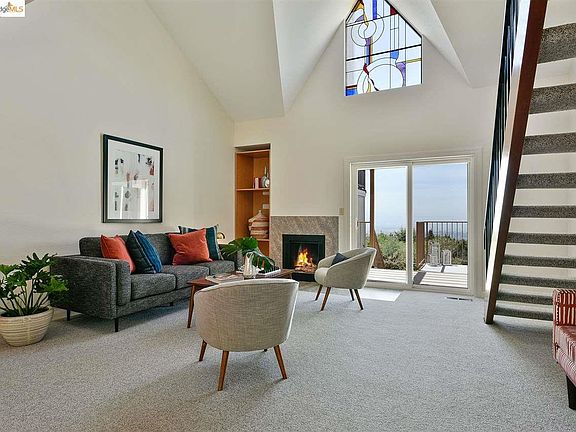 The Crestmont area of Oakland is known for its sunshine and stellar views. It is astonishing to think that you are so close to everything that makes Oakland the beloved city it is. Just moments from hiking trails and regional parks and a breeze to the Best of Oakland. Donald Roth was the only owner of 31 Samaria Lane and it was his "Goldilocks"- not too hot, not too cold - but just right! He loved the panoramic views, especially the amazing sunsets that seemed to be on 'auto replay.' He liked making the many different areas of the home something unique, from his sunroom, sauna, and courtyard to the glass solarium. He enjoyed having space and freedom to have his workshop and garage, and he felt comfortable in his kitchen, especially when he prepared his signature New Year's Day meal of cornbread, grits, and black eyed peas, reminders of his Southern roots. The end unit on Samaria Lane; this beloved unit has a rooftop deck and dead-on views of downtown Oakland, San Francisco, and both the Bay & Golden Gate bridges. Come at sunset and relax. Features include: -Built in 1984 -1,216 sq. ft. per public record -$207 monthly HOA dues -2 bedrooms -1 bathroom -Panoramic downtown Oakland, San Francisco, Bay and 2-bridge views -Rooftop deck -Solarium -Hot tub -2-car garage with interior access - level-in living -Fireplace -Decks on each level -Workshop space and lots of storage -Updated kitchen with cabinetry that has 20 drawers for storage! -Bathroom with an oversized bathtub with views of the trees and city -Solar panels for efficiency, a solarium for restoration, and outdoor fountain for tranquility