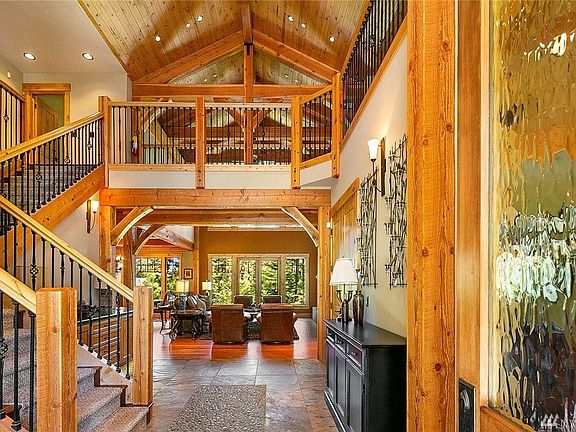 Gorgeous Timber-Framed home in the heart of Suncadia on a private wooded site, closest home 90' away. You rarely see this type of construction today! The real stone FP w/basalt stone accents & tongue-n-groove ceilings add to the mountain feel. Master on main w/3 bedrooms up + bonus/media room. Main floor office could become a 5th bedroom. Fun outdoor patio w/FP & heat lamps for year round enjoyment. Newly remodeled master bathroom. Home has generator. Most furnishings included/turn key.