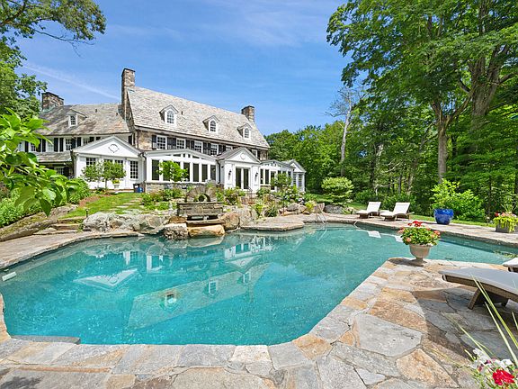 Luxury Rental, Extraordinary 3+acre Greenwich mid country estate in a bucolic & private setting, situated within close proximity to downtown Greenwich.This recently renovated & elegantly furnished stone Georgian Colonial blends timeless character with modern aesthetics. This substantial home features gracious & luxurious living spaces, ideal for entertaining family & friends. Architectural highlights include high ceilings, oversize windows, arched doorways, stone accents plus a striking three-story staircase. The 1st floor features a grand front-to-back center hall flanked by sizable living & dining rooms, spacious kitchen/family room with adjacent double-height casual dining space, first floor alternative primary suite, study plus home office in addition to a solarium & cabana space overlooking the pool. The 2nd floor features a palatial primary suite, 3 sizable guest bedrooms with bathrooms ensuite plus a large laundry room. The 3rd floor features a large bedroom with ensuite bathroom, home gym plus media/rec room with wet bar. There's also a large wine cellar in the lower level. The oversize property features an inviting free-form pool & spa with waterfall plus open level lawn areas adjacent to 29 acres of conversation land. Lease terms exclude access to the cottage/garage as well as the fenced yard behind the cottage/garage. Lease term excludes access to the cottage, garage and yard behind the cottage. Renter pays All utilities, Cable, Credit Check, Electricity, Gas, Grounds Care, Heat, Pool Maintenance, Snow Removal, Renters Insurance, Trash removal, Water