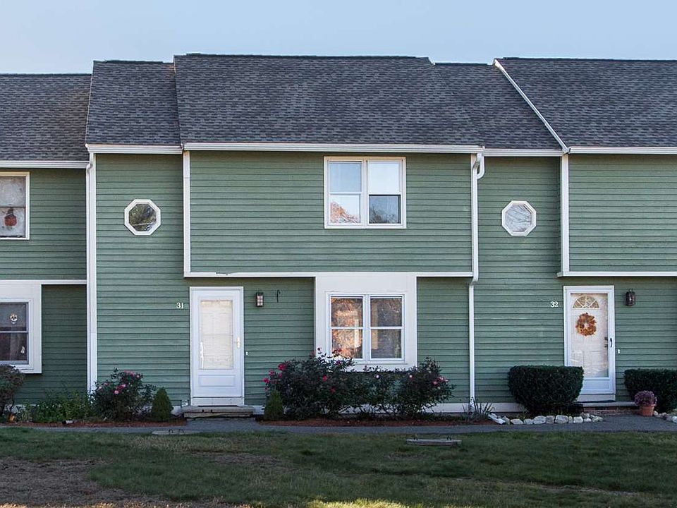 Well cared for 2 bedroom townhouse in a quaint, country setting. The large, True-style balcony has been freshly stained with a sweet view overlooking a field and expanse of woods. Bright and sunny all afternoon long. The living room has a flawless oak hardwood floor and tile throughout the kitchen and dining area. The master bedroom has a cathedral ceiling, double closets and direct entry to the full bath. Freshly painted interior. Terrific location if you're looking for privacy and a pet friendly community. This building has a newer roof and is scheduled for vinyl siding this fall.