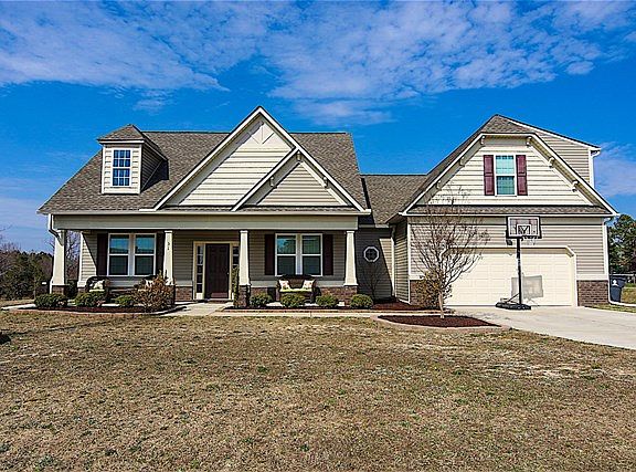 LOVELY 3 BR/3 Ba House* Large Family Room has Corner Gas Log Fireplace and Ceiling Fan* Kitchen features Granite Countertops, Tile Back Splash & HUGE Pantry* 1st floor Master Suite has Tray Ceiling w/ Ceiling Fan, LARGE Walk In Closet, Dual Vanities, Soaking Tub & Separate Shower* Split Bedroom Plan* Finished Bonus Rm & Recreation Rm on 2nd floor with Full Bath* Covered Patio plus Grilling Patio* Large Flat Back Yard with Wooded Buffer* Close to I-40 & I 95