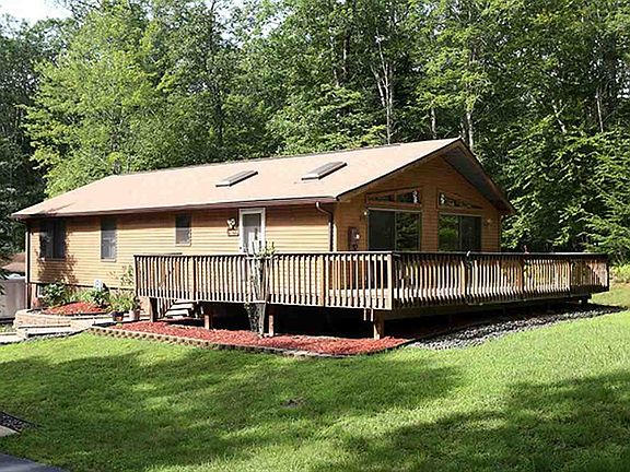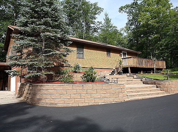 PRICE REDUCED! Cedar-sided ranch home on 5.05 level, wooded and secluded acres featuring 3 bedrooms, 3 baths and a partially finished basement with a 2nd kitchen area. There is a large wrap-around deck, attached carport, outbuilding, paved driveway and professional landscaping. New oak flooring is in the living room, dining area and hallway, plus new ceramic tile flooring has been installed in the kitchen. A seasonal stream runs through the property and additional land is available. The adjoining 5-acre lot is offered for $49,000. See MLS #38152.