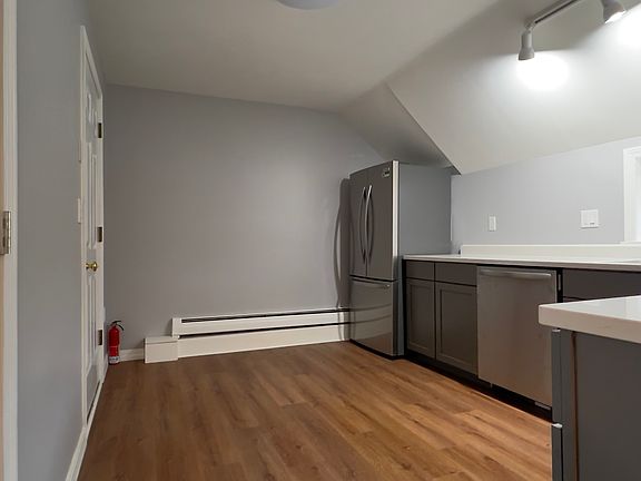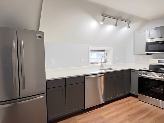 All new complete renovation, two levels, all new appliances, new floors, new lighting and ceiling fans, paint, bathroom vanity, one bedroom on each level, free on-site parking, rubbish and snow removal included, heat and water and sewer included. Separate laundry room on main level with washer and dryer hookup - no W&D provided; owner lives on site during summer months; property is close to Middle and High Schools, and downtown area. Renter pays for electricity/hot water; cable and internet;