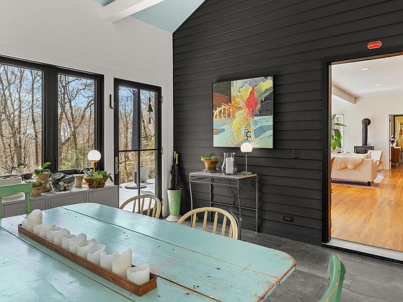 Furnished Summer rental, available July 15th - September 15th.This stunning home overlooking Lake Waramaug & Hopkins Vineyard is now available to rent from July 15th - September 15th. The pristinely manicured property features beautiful plantings that surround the front and back decks, creating an ideal atmosphere for entertaining and outdoor Summer dining. Enter through the 4 season heated sunroom to an open floor plan where natural light shines through to every space. The kitchen has stone countertops as well as a butcher block counter surrounding the gas stove. Adjacent is a large pantry with a washer/dryer and exterior access to the back yard. The dining/living room area has a large dining table, French doors leading to the front deck, and a Rais wood burning stove. A cozy den with a TV and a nearby full bathroom complete the main level. Upstairs you'll find an office nook with large windows for enjoying the view. The primary bedroom has a vaulted ceiling, double closets and a tastefully remodeled primary bathroom with a shower & skylight. Another large and stylish full bathroom with a tub & shower is accessed from the hallway and services the other two bedrooms. The back yard features an outdoor shower, a vegetable/flower garden, and a 2 car detached garage. Tenants can enjoy access to Warren's beautiful town beach and the picturesque setting at Hopkins, both less than a mile away. Quick access to the nearby towns of New Preston, Washington Depot, Kent & Litchfield, 30 mins from Metro North trains & under 2 hrs. to Manhattan!