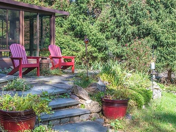 Gardens and nature abound in this country charming home in Boonton Township with 3 bedrooms, 2 full baths and over 1800 sqft. A private get away with 1.4 acres, yet a close commute to NYC. Lower level has a master bedroom with full bath, large living room with wood burning stove, kitchen is open and connects to dinning area and sitting room with skylights and peaceful views of the backyard and outdoor fireplace. Second floor has 2 very spacious bedrooms and a full bath with high cathedral ceilings and beams and skylights that bring the natural light indoors. A very serene place to call home!