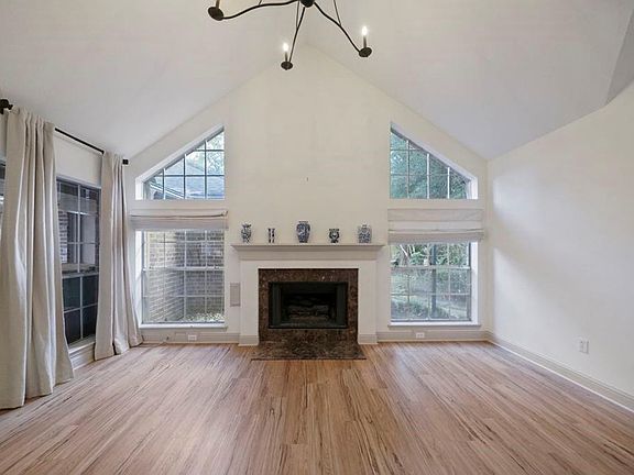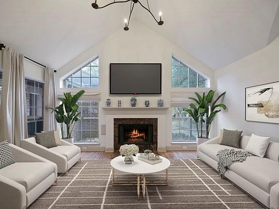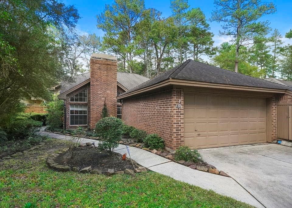 Beautifully renovated, accessible light-filled home in the heart of The Woodlands, located near shopping, parks, and walking trails. Nestled on a small cul-de-sac in the desirable Cochran's Crossing village, this spacious patio home has been completely updated with elegant designer finishes.Accessible entry through the garage. Durable LVP flooring throughout, a modern kitchen with quartz countertops, GE Cafe appliances, and a coffee bar area.Two living areas each have fireplaces, with marble and granite surrounds. The spacious primary suite is located downstairs, and the luxurious, remodeled bath offers custom cabinetry, a large walk-in closet, and an oversized stunning walk-in wet room with a soaking tub and brushed brass fixtures. Step outside to a low-maintenance backyard featuring a deck and artificial turf perfect for relaxing or entertaining. A small covered and tiled breezeway/patio area connects the garage to the house. Two bedrooms, full bath up.