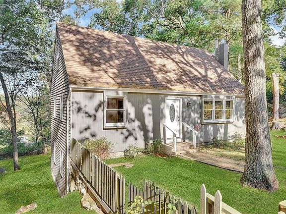 Classic Cape style home. Updated kitchen with granite counters, Jenn-Air refrigerator, induction cooktop range. All stainless appliances. The first floor has an eat in kitchen, living room with built-ins, a full bath with tiled floor, and two rooms that could be a bedroom and den, or office. There is a newer deck off of the kitchen. Upstairs there is a full bath and two bedrooms. The lower level features a full walk-out with higher ceilings, prefect for additional living space. There is a new oil-fired hot air system being installed, and an ac coil, making the house ready for central air with the addition of a condenser. There is a wood stove in the basement for supplemental heat. The washer and dryer are in the lower level as well. Outside is a natural fire pit. A large grouping of rocks present for a great outdoor entertaining space to gather, and enjoy evenings outside.