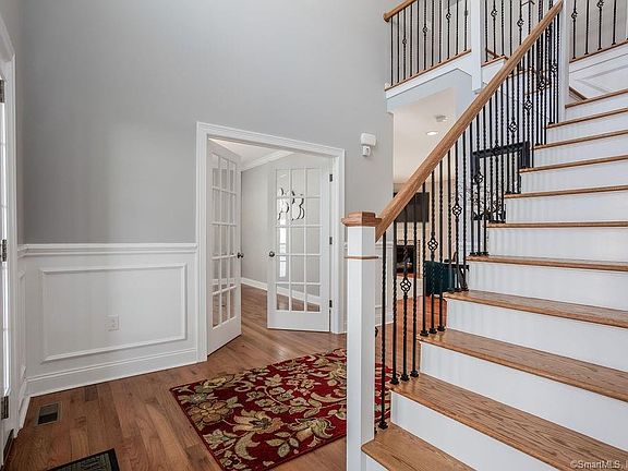 Better than new builder's model home! Lots of details you don't typically see! Hardwood floors throughout the home including all bedrooms! Gorgeous wrought iron spindles on staircase. You will love the lighting and beautiful trimwork. Upon entering this home, you'll find a spacious foyer. To the left is a dedicated office with double doors. Lots of natural light in this room which can be used as a formal living room or music room. To the right of the foyer is the lovely dining room with trayed ceiling and wainscoting. Beautiful white cabinets and granite counters in the spacious kitchen with subway tile backsplash, tons of cabinets including pantry cabinets! A breakfast nook overlooking the backyard is included in the kitchen. The kitchen is open to the spacious family room with gas fireplace. This room has a slider to a deck overlooking the private backyard! Plenty of room to play in the yard with nature at your door! Lovely wooded conservation area abuts this property. The second floor includes 4 bedrooms. The master is spacious and has a luxurious master bath with double doors. Grand shower with separate tub, double sink vanity and walk in closet. 4th bedroom over the garage can be a bonus room or second office. 2nd floor laundry! The walkout basement has a slider to the backyard and is ready to be finished! Water softener has been added. If you are looking for a spacious, almost new home in a great neighborhood, then this is it!