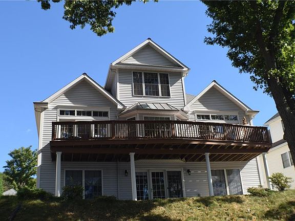 Immaculate unit in this 55+ Complex located on cul de sac offering sprawling views of river. Main level features bright and open floor plan perfect to entertain. Formal sitting room or office as you enter home leading to living room with fireplace and formal dining area with french doors leading to deck overlooking river and upgraded kitchen with breakfast nook. Main level master bedroom with full bath, french doors leading to deck also offers walk in closet with custom California Closets. Upper level features family room with loads of walk in storage and bedroom overlooking river and walk in closet with full bath. Finished lower level and full bath lead to outdoor patio through french doors. Complex offers club house and in ground pool.