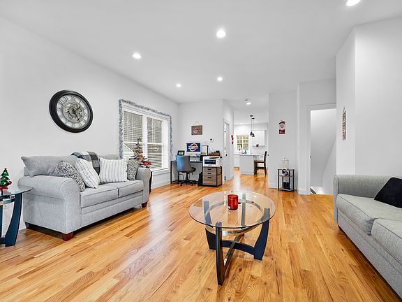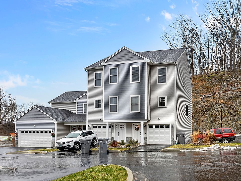 Welcome to the picturesque community of Daybreak Ridge Condominiums, The "Andrew" model townhome offers a thoughtfully designed open-concept floor plan, perfect for modern living. The kitchen features stainless steel appliances, quartz countertops, a tiled backsplash, a pantry, and a central island that seamlessly flows into the dining and living areas. Enjoy the ambiance of the gas fireplace and access to a private Trex deck, ideal for relaxing or entertaining. A beautifully tiled half bath completes the main level. The upper level includes a generously sized primary suite with a cathedral ceiling, walk-in closet, and room for a king-size bed. The additional bedroom suite also boasts a walk-in closet and cathedral ceiling. Both are served by a full bathroom featuring a double-sink vanity. Additional highlights include hardwood floors, tiled baths, natural gas heating, city water and sewer, and low common charges. The unit also features a finished workshop or gym on the lower level through the 1 car garage. There's also assigned parking space for added convenience, while energy-efficient features, such as a tankless hot water heater, provide lasting value. Experience the perfect blend of style, comfort, and functionality at Daybreak Ridge Condominiums.