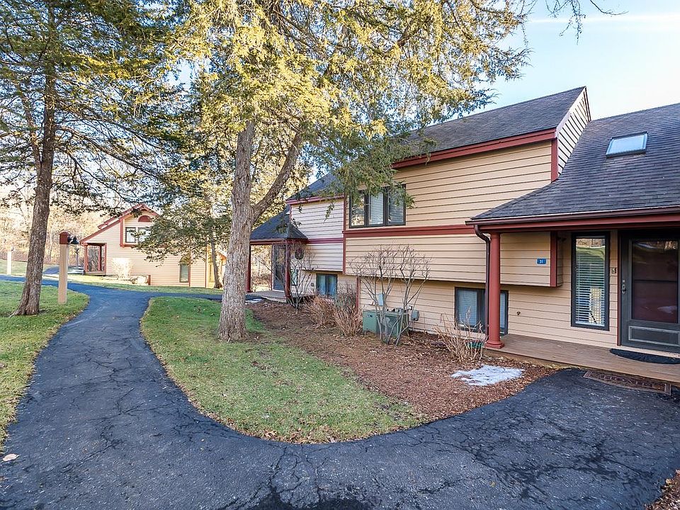 Spectacular views abound from this perfectly situated 2-bed, 2-bath town home in The Galena Territory. An easy-to-manage kitchen with breakfast counter anchors the main level, and the adjoining living room features a wood-burning fireplace and large western-facing windows allowing unfettered views of gorgeous sunsets from a perch overlooking the golf course and surrounding hills. The home’s deck is also accessible through the living room. The master bedroom and bath and laundry space is located on the upper level and the other bedroom is on the lower level, with a connected, common bathroom. The home is carpeted except for the kitchen and baths. The unit is sold furnished and can be used as a short term rental upon buyer obtaining Jo Daviess guest accommodation license. Spring Creek Town House Association monthly dues are $270. Schedule your private showing today!