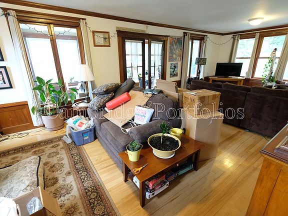Renovated 2 levels spacious 1890 sq.ft. 3 bedroom/2.5 bathroom apartment on 2nd and 3rd floor of 2 family in Lexington. 1st level: Huge living room with decorative fireplace and with access to large heated sunroom. Dining room. Large eat-in kitchen with skylights and access to cozy screened back porch. 1 large bedroom with private half bathroom and 1 smaller bedroom with double closet. Full bathroom. Laundry machines. 2nd level: Large open space which can be used as an office space, playroom or exercise area. Large 3rd bedroom. Large 2nd full bathroom. Hardwood floors. 3 off street parking. Huge shared yard with patio and place for gardening. Pets ok. Available Now.