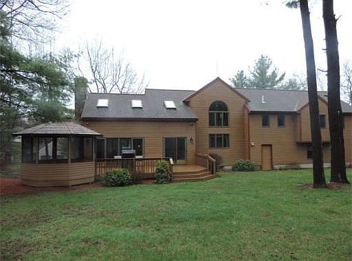 New to market! Spectacular Offering! Prime Ridgeway Estates Neighborhood with this spacious stone front Contemp Colonial on beautifully landscaped lot, including landscape lighting. Sliders from LR & Kit to oversized deck, screened gazebo and luscious yard. Irrigation system not used in 3 years. Features open concept living with soaring ceiling heights in famrm (with floor to ceiling stone fireplace), cath ceils in kit & famrm, 3 car garage and more. Brs 3 and 4 now used as a 2 room suite but easily converted back to separate spaces- doorways to hallway remain in tact. Master bath needs completion. First floor office listed as dining room. Don't delay, take advantage of North Reading's superior school system, currently ranking 29th in the state, with new $100+ million high & middle schools nearing completion.