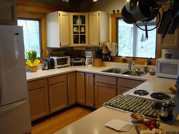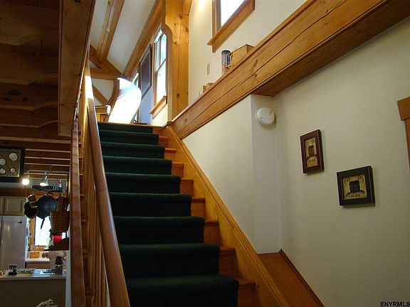 This immaculate timber framed home has been loved since it's been built. Gorgeous views from every window and large porch. Owner & builder kept to the essence of timber frame building & produced art to live in! Warm, spacious, natural wood flooring throughout. Live in the woods, but be a short commute to the Capital District, VT & Mass. Great planning in this timber framed community. More than move-in ready! PFOA issues in the area are resolved with a state of the art filtration system. All docs available.