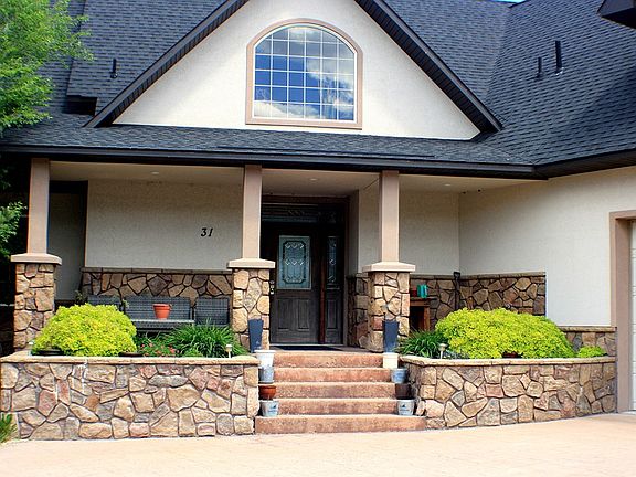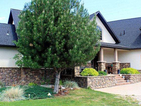 SPECTACULAR home nestled on a private and serene bluff with sweeping views. Completed in 2004, this grand home features approximately 6100 square feet of striking living space, the main floor features views from the front & back, beautiful hardwood floors, plenty of natural light with a spacious living room, formal dining room, an open kitchen with beautiful granite counter tops, ample storage, and spacious breakfast bar including 3 full bathrooms with granite and tile throughout, 1 half bath and 5 bedrooms. Enjoy beautiful sunsets from the master suite that features a generous walk-in closet, walk-in shower, and large garden tub. The upper floor offers 2 spacious bedrooms, 1 bathroom, and a large entertainment room or theater room with a wet bar. The lower level features 2 bedrooms, additional family room, bathroom, large storage room and space for a wine room or cold storage. The over-sized 3 car garage has room for all of your recreational activities, heated and ready for your next adventure. Property features a water right from the Arrowhead Water District, fully landscaped with large covered deck on the main level and covered patio on the lower level. This hidden gem has been tastefully & remarkably crafted to today's modern lifestyle.