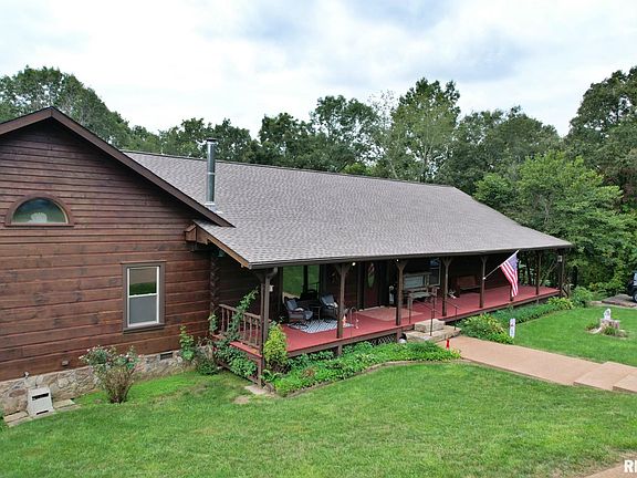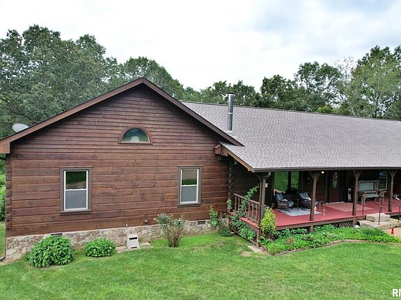 WOW, take a look at this Honest Abe log home on approximately 21.5 acres that borders the north side of the Shawnee National Forest. Beautiful views from the covered front and back porches. This home is 3500 square feet with 4 bedrooms and 3 bathrooms. Some features include hickory hard wood floors, ceramic tile floors, large updated kitchen & bathrooms, Great Room for entertaining, separate living room with stone fireplace, cedar lined walk in closets, 18x36 inground pool, hot tub under pavilion, whole house generator, water softener, new roof in 2023 and so much more. Detached 3 car garage with a 1400 sq feet apartment above and a separate 55x35 shop. Home is currently being rented out through Airbnb & Vrbo with a great income if you are interested in continuing to rent it out. Appointments must be scheduled with the listing agent.