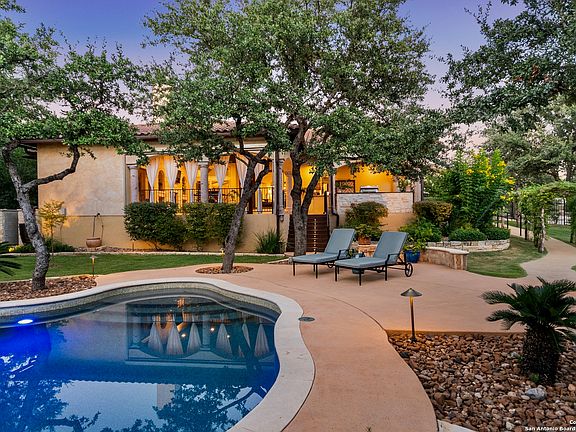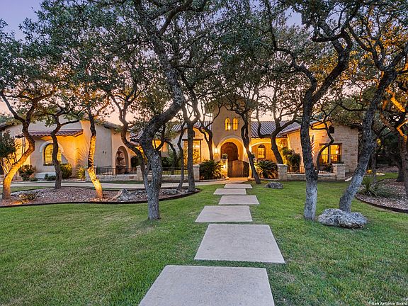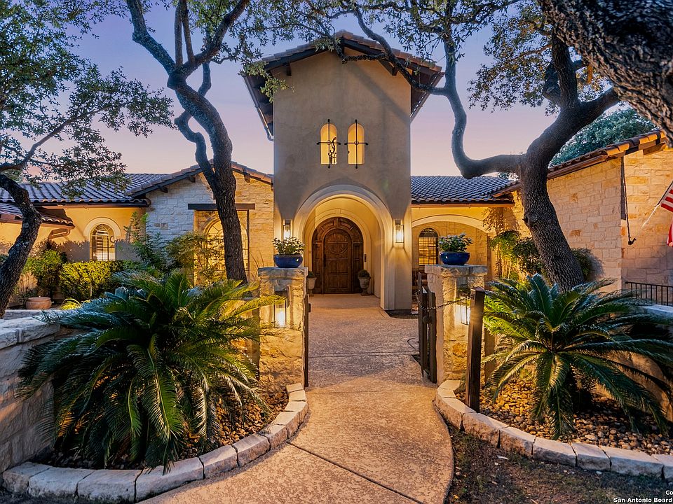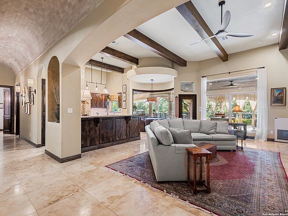 31 Stone Terrace - a Santa Barbara-inspired villa in the coveted, quaint community of Stone Creek Ranch that feels like a private retreat the moment you arrive at the home. Enter the courtyard and pass through the arched front door, and you'll be in awe of this 2011 Parade of Homes property featuring hand-troweled walls, Venetian plaster niches, brick barrel ceiling, exposed beams, Cantera columns, and plantation shutters. Set on 1.21 manicured, oak-studded acres, this 3,423-sf home is ready for its new owners! The chef's kitchen has a Tiberius granite center island, vegetable sink, and knotty alder cabinetry, while the butted-glass breakfast area and living room look out over a magnificent backyard oasis. The primary suite features a quiet sitting area overlooking the outdoor living space. Two additional bedrooms have en-suite baths, and a fourth bedroom shares the guest bath. Outside is an entertainer's paradise with a 1,000-sf covered living area, an outdoor kitchen, and a fireplace that provides the perfect space for dining and entertaining. For warmer evenings, discreet remote screens lower to provide shade. Enjoy the community amenities, float the lazy river, play pool at the clubhouse, get a workout in at the fitness center, enjoy the pool, or let the kiddos play on the playground. Located in the highly acclaimed Boerne Independent School District, 31 Stone Terrace is just minutes from downtown Boerne, a short 15 miles to The Rim at La Cantera, and 27 miles to the San Antonio Airport. Please see the list of home features to see all the updates the sellers have done, a few of the largest upgrades being the addition of a propane tank for a gas stove and fireplace, installing a whole house Generac generator, and the expansion/addition of the driveway and added sidewalks. For a private showing or more information, reach out to Hal Gahm with The Gahm Real Estate Team. We'd love to introduce you to this special Stone Creek Ranch address.